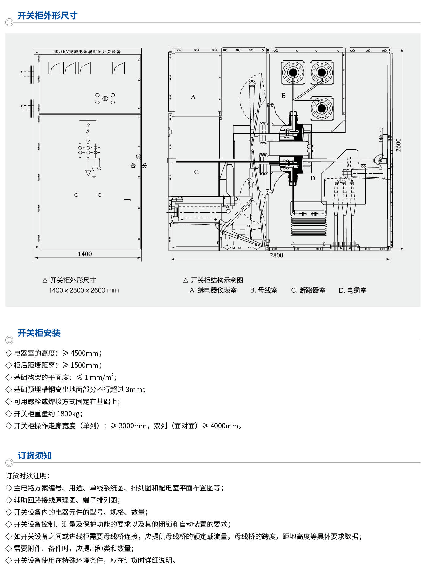 KYN61-40.5铠装移开式交流金属封闭开关设备(以下简称开关柜)系三相交流量50Hz、额定电压40.5kV的户内成套配电装置。作为发电厂、变电站及工矿企业接受和分配电能之用,对电路起到控制、保护和监测等功能,还可用于频繁操作的场所。本开关柜符合GB3906-2006、GB/T11022-2011及DL/T404-2007等标准。