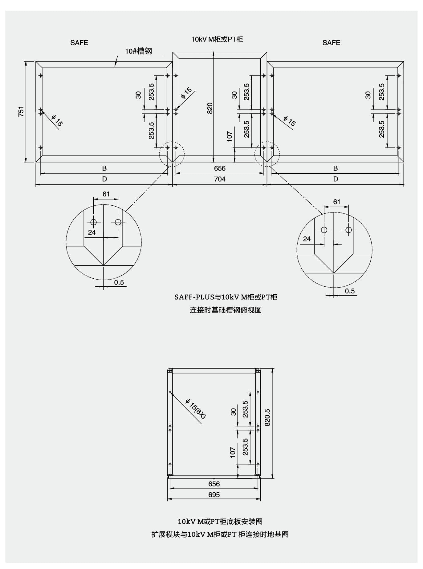 SRM6-12系列充气式开关柜安装在一个镀锌板框架上,开关单元在SF6气箱内,气箱由抗腐蚀和无磁性3mm厚不锈钢板制成。SF6气箱是一个“密封压力系统”在正常工作环境下可运行20年。SF6气体正常工作时压力为0.15~0.4br。气箱装有压力释放装置,当压力过高时,保证气体能从底部或后部释放。